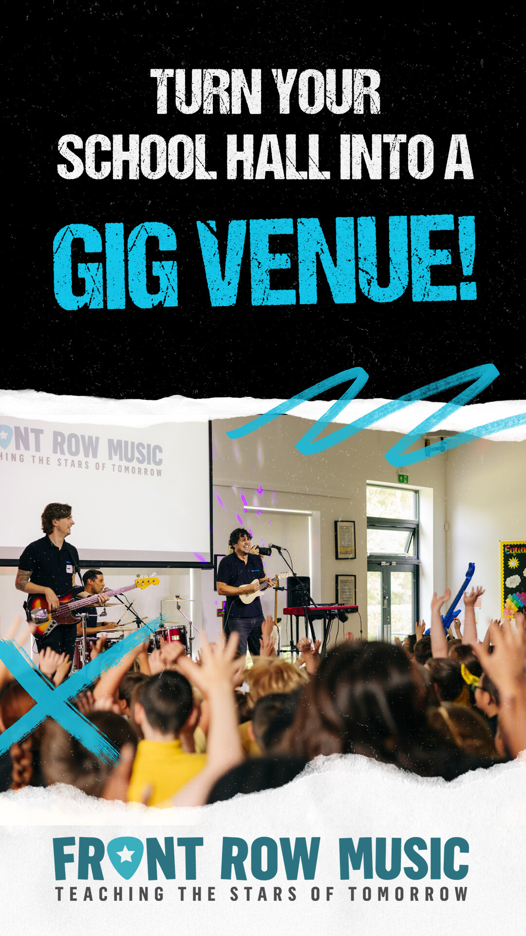 If you’re interested in having Front Row Music perform a free gig at your school, please fill out the form below and we’ll get back to you! Watch this video to find out more about the free gig, and the guitar and ukulele lessons we teach in hundreds of schools.